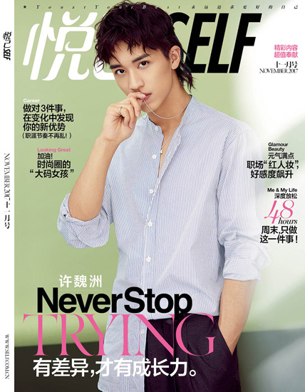 近日,许魏洲登上《悦己SELF》11月刊封面 ,杂志以“有差异,才有成长力”为题。采访中,即将迎来23岁生日的他说,自己和其他94年的同龄人一样,是年轻的、疯狂的、自我的,也会为了梦想使劲奋斗。当下还有好多好多东西要学,而一辈子都不能喊cut的,就是学做人。