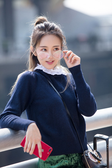 近日,刘泳希曝光一组机场街拍,时尚造型解锁初秋潮搭。照片中,刘泳希以俏皮半丸子头发型亮相,佩戴不规则框镜,肩搭可爱迷你包,身着蓝色毛衣搭配绿色丝绒短裙,脚踩毛毛懒人鞋,凸显修长美腿,潮范儿十足。