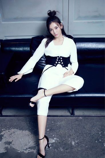 近日,90后新晋小花尤靖茹曝光了一组最新写真大片,她身着时尚感十足的白色连体裤,和风的腰带设计和荷叶长袖尽显好身材。照片中,尤靖茹扎起半丸子头,干净利落的妆容搭配酷劲十足的眼神,展现女性柔美的同时,又不失干练与大气。