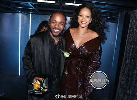 没有走格莱美红毯的Rihanna一身2016款风衣亮相现场,与Kendrick Lamar合作的单曲获得了今年最佳说唱表演奖!